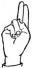 На ћирилици написано НИНА БЕЛОБРКОВИЋ састоји се из 15 слова [?]. Исписано ћириличном једноручном азбуком за глувонеме: